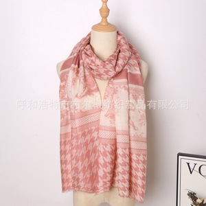 2025秋冬新款印花长巾丛林千鸟纯羊毛轻薄舒适面料围巾保暖