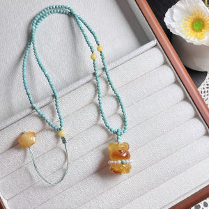 2025年正宗设计款天然琥珀蜜蜡立体雕刻俏色爱心蜜蜡小熊吊坠项链