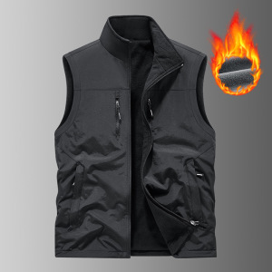 跨境秋冬新款双面穿马甲男立领休闲坎肩大码保暖加绒加厚摄影马甲