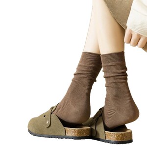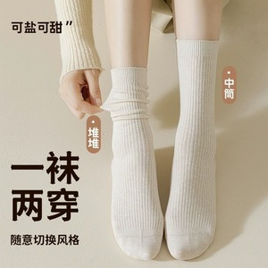 纯色中筒袜配小皮鞋深灰色堆堆袜女秋冬季长筒袜子棉