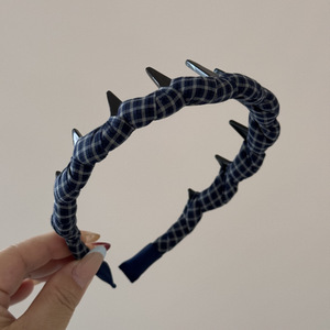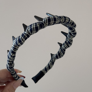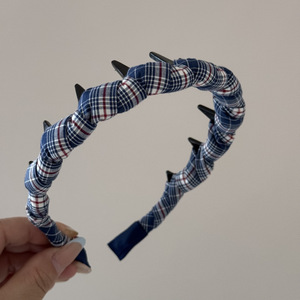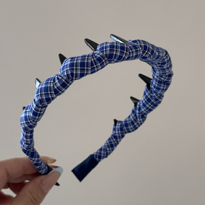 チェック柄の布製ロング歯フープ - ネイビーブルー