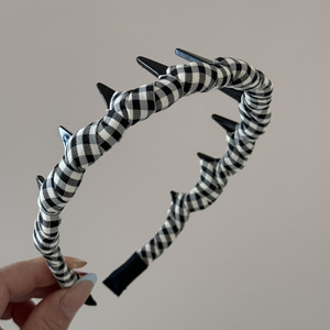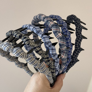 韓国風のシンプルなチェック柄ラップロング歯波状ヘアフープ、女性用、外出用多用途ヘアフープ、ネットセレブヘアピンヘアアクセサリー