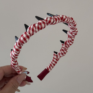 チェック柄の布製ロングトゥースフープ - ブルー、ホワイト、レッド