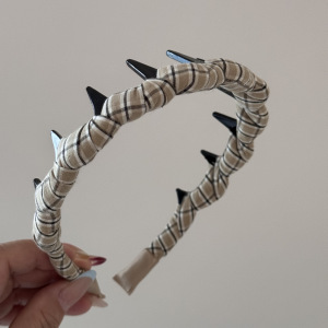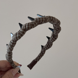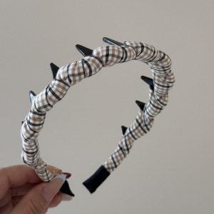 チェック柄の布製ロングトゥースフープ-ブラウン