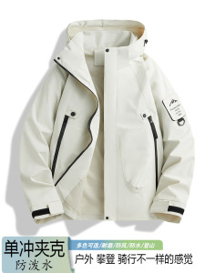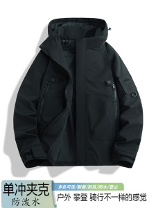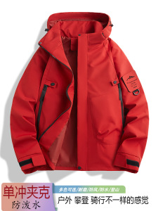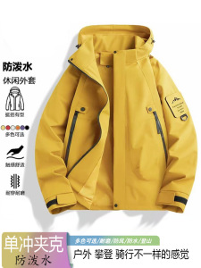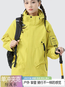 情侣三防冲锋衣春秋户外男女款单层夹克防风防水耐磨连帽登山服潮