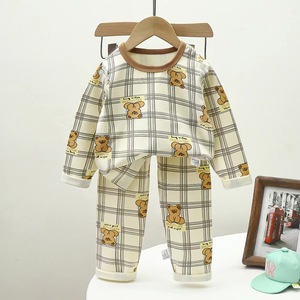 秋冬儿童睡衣套装纯棉a类无骨莱卡棉内衣男童秋衣秋裤宝宝家居服