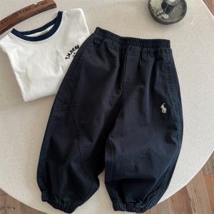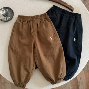 儿童裤子2025秋男童日系潮牌休闲裤宝宝水洗棉布裤中小童束脚裤