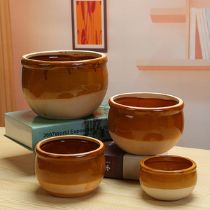 个性大号睡莲碗莲缸水养铜钱草绿萝富贵竹陶瓷花盆无孔高款养鱼D&