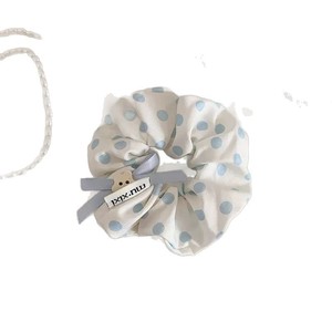 韩系蓝色波点大肠发圈女感慵懒风扎头发绳低马尾发饰简约头绳
