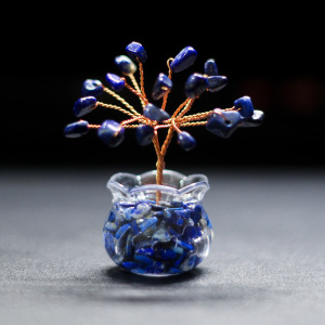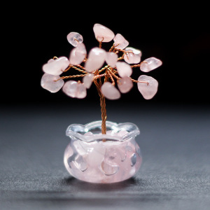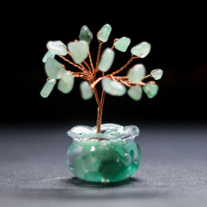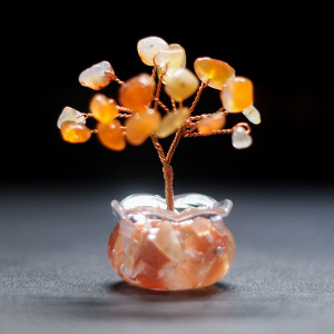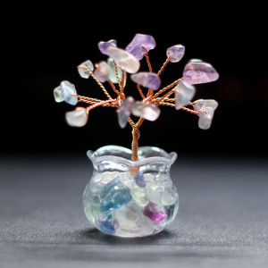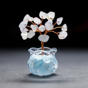 跨境爆款黄水晶树聚宝盆茶盏天然水晶碎石发财树手工创意家居装饰