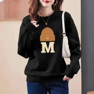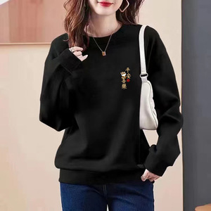 春と秋のレディーススウェットシャツ2025新しいラウンドネックイントレンディなルーズ長袖ニッチデザイン多用途トップ