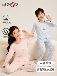 儿童家居服a类纯棉秋冬季男童卡通睡衣2025新款女童长袖内衣套装