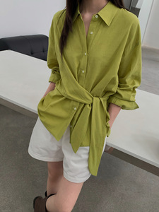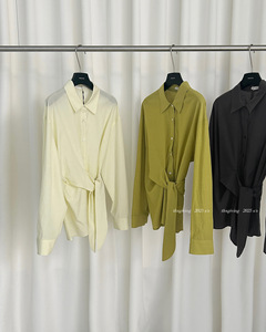 TG 気質多用途ストラップウエスト痩身シャツ女性のための 2025 秋の新しい快適なドレープ薄いトップ 25578