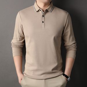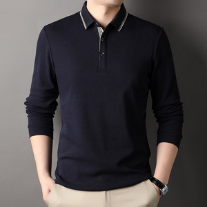 YINGAO全棉纯色长袖POLO衫男士秋季新款中年宽松爸爸男打底衫批发