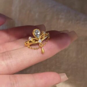 复古宫廷风海蓝皇冠戒指女简约精致轻奢高级感小众独特设计感指环