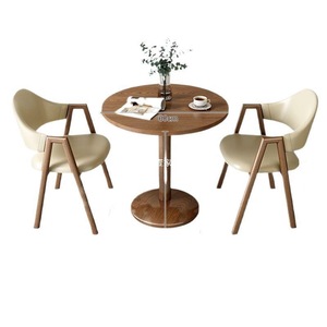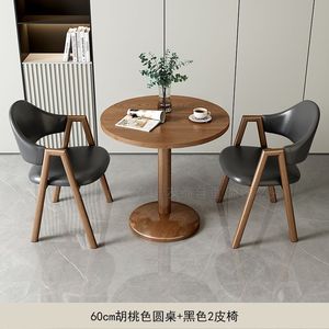 棕色2皮椅+60原木色圆桌