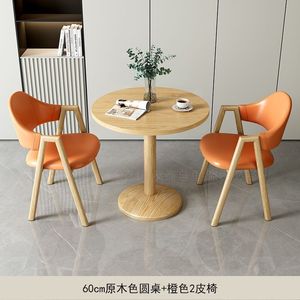 橙色2皮椅+60原木色圆桌