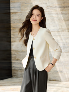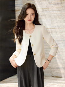 米白小香风外套女2025新款职业装气质女神范高端正装长袖西服外套