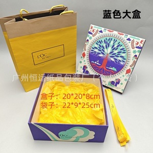 黄色翻盖盒;盒子⨥袋子⨥丝带