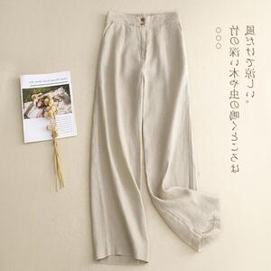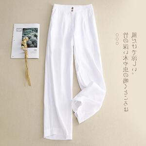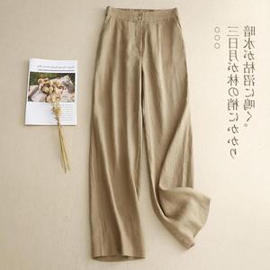 实拍 亚麻阔腿裤女 休闲裤秋季直筒裤女显瘦百搭女裤麻料裤子女