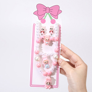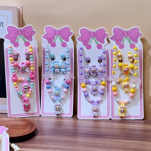 儿童卡通项链手链套装趣味拉布布串珠多色可爱组合女童甜美配饰