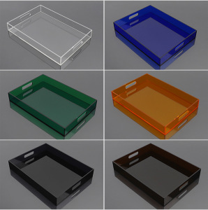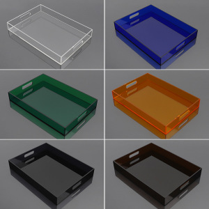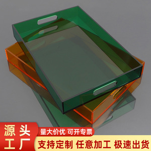 透明亚克力托盘酒店餐厅商超浴室长方形收纳架带把手茶盘置物架