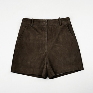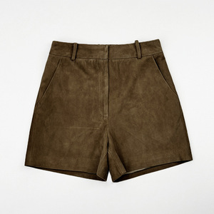 本革レザーパンツ HN31140 英国風万能第一層ヤギスエード後ろゴムウエストカジュアル万能ショーツ女性用