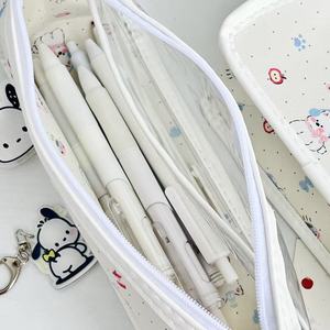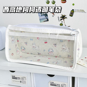 可爱西高地狗狗透明三角笔袋ins高颜值文具袋大容量学生收纳袋