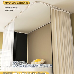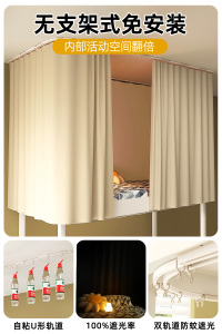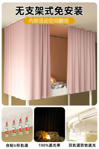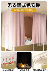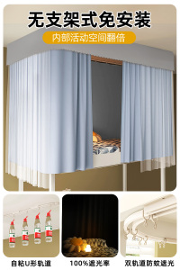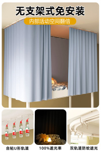 寮ベッドカーテン 学生貼り付けトラック 強遮光 U字型ダブルスライド蚊帳 一体型二段ベッド l