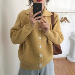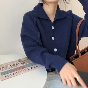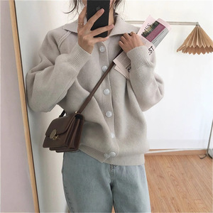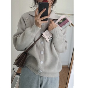 韓国スタイルのシンプルなカジュアル無地の女性のニットカーディガン 2025 秋と冬の新しいラペルアンチスリーブ女性のセータージャケット