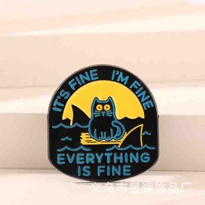 跨境新品暗黑系猫咪金属胸章创意动物百搭字母别针包包衣服配饰批
