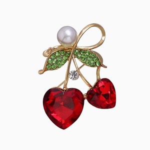韓国版の高級赤いガラスのピーチハート型ブローチクリスタルガラスの高級コサージュウェディングブライダルブローチ