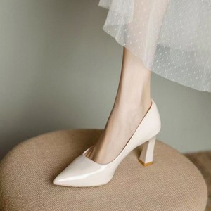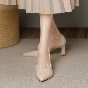 2025年新款软皮配裙子职业通勤单鞋子不累脚裸色尖头粗跟高跟鞋女