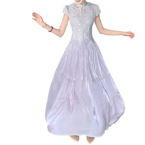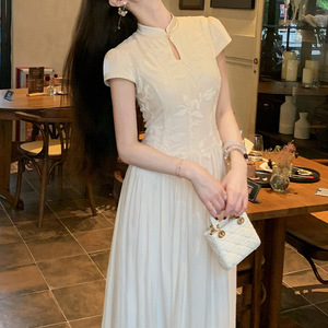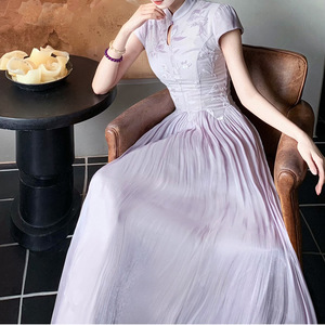 2025年【云纱绣影】新中式国风植绒拼接改良旗袍女镂空连衣裙