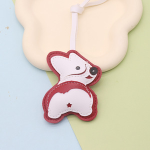 漏屁股柯基挂件diy皮革钥匙扣包包挂件手工礼物情侣diy钥匙扣批发