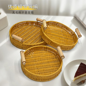 仿藤水果盘手工编织日式面包篮馒头筐客厅家用收纳筐藤编双耳托盘