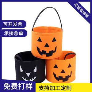 跨境新款毛毡收纳桶大容量收纳筐万圣节卡通手提包整理储物箱