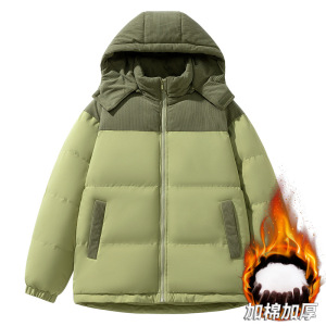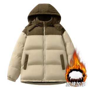 跨境团购灯芯绒棉衣男士2025冬季潮流宽松拼色可脱卸帽棉袄外套男
