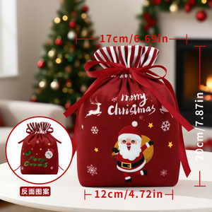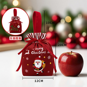 圣诞节绒布手提袋跨境新品苹果包装袋抽拉绳收纳糖果礼品袋批发