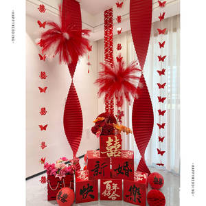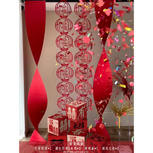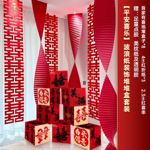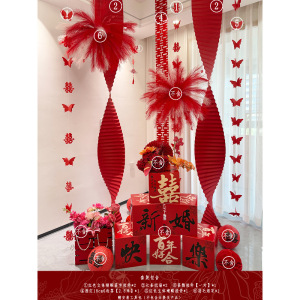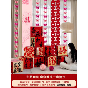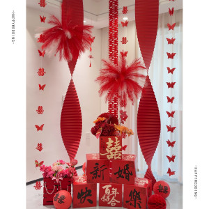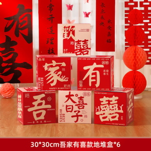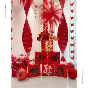 2025婚房氛围感布置客厅结婚装饰新房堆堆盒落地摆件长条喜字拉花