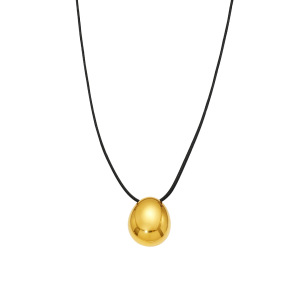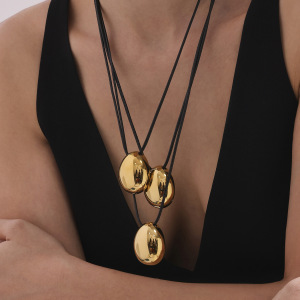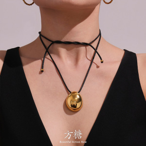方糖不锈钢抽拉扣大水滴光面长款项链镀18k金皮绳可DIY佩戴毛衣链