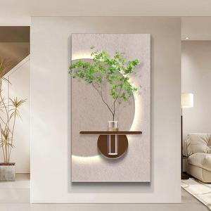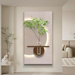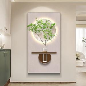 新款玄关装饰画水培绿植客厅走廊挂画入户壁灯过道壁画雕刻实木