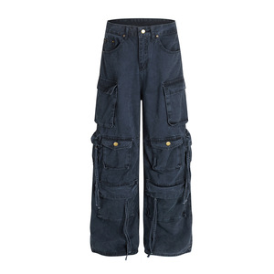 嘉衣库男装2025高级感痞帅美式复古水洗多口袋裤阔腿裤工装伞兵裤