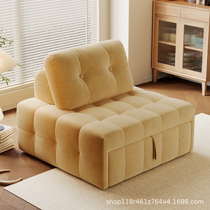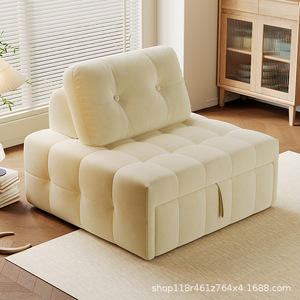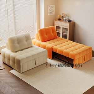 奶油风泡芙沙发床坐卧两用多功能小户型布艺客厅折叠伸缩单人沙发