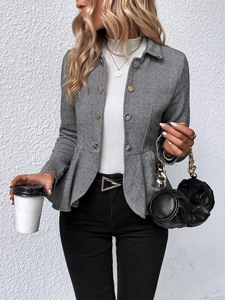 欧美外贸跨境新款女装翻领提花修身双排扣气质办公室西装外套女