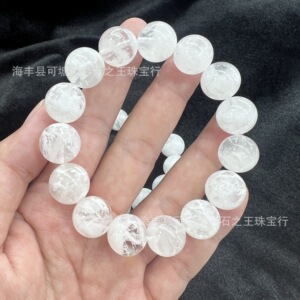 天然水晶 婚纱白雪花幽灵手串雪霜发粉霜幽灵意象水晶手链送礼物