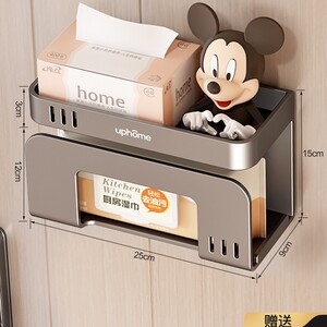 磁吸款/枪灰色置物湿巾架长25cm【上可置物下可抽纸】