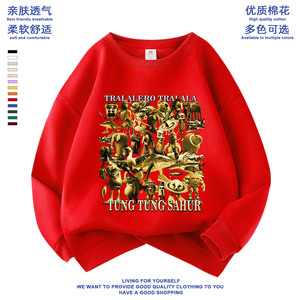 国外山海经木棍人中小儿童秋冬圆领卫衣卡通印花学生加绒上衣服潮