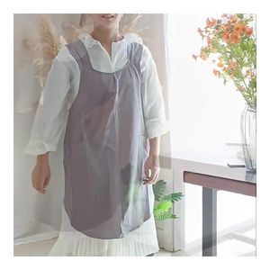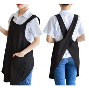 简约日韩风棉麻围裙女款居家舒适罩衣花店复古免系带围兜