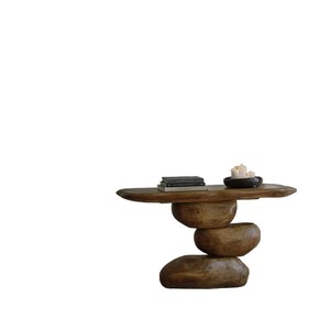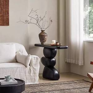 侘寂风碳化黑玄关台原木端景台靠墙玄关桌复古禅意磐石玄关入户桌